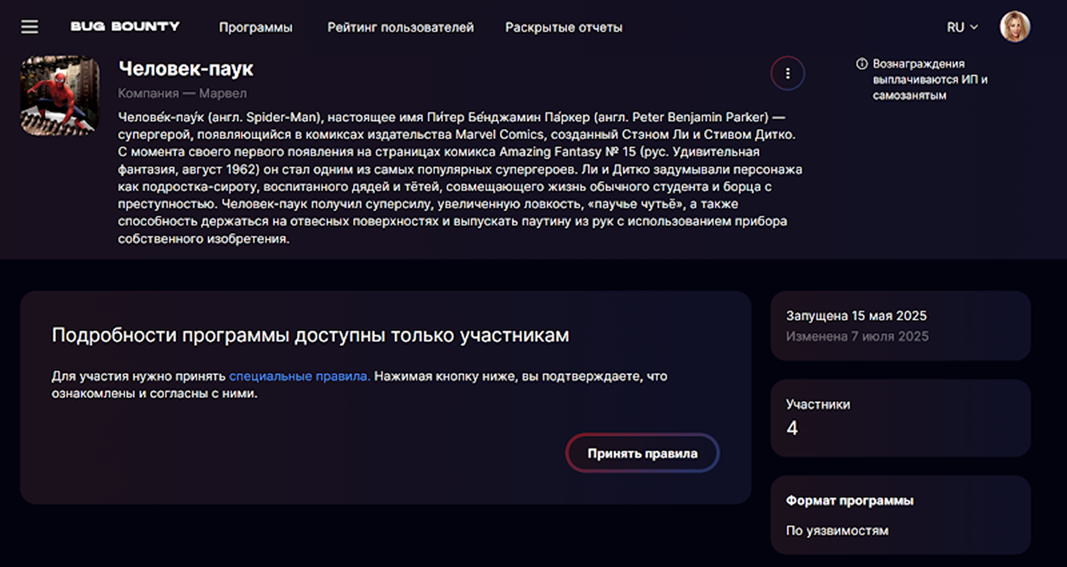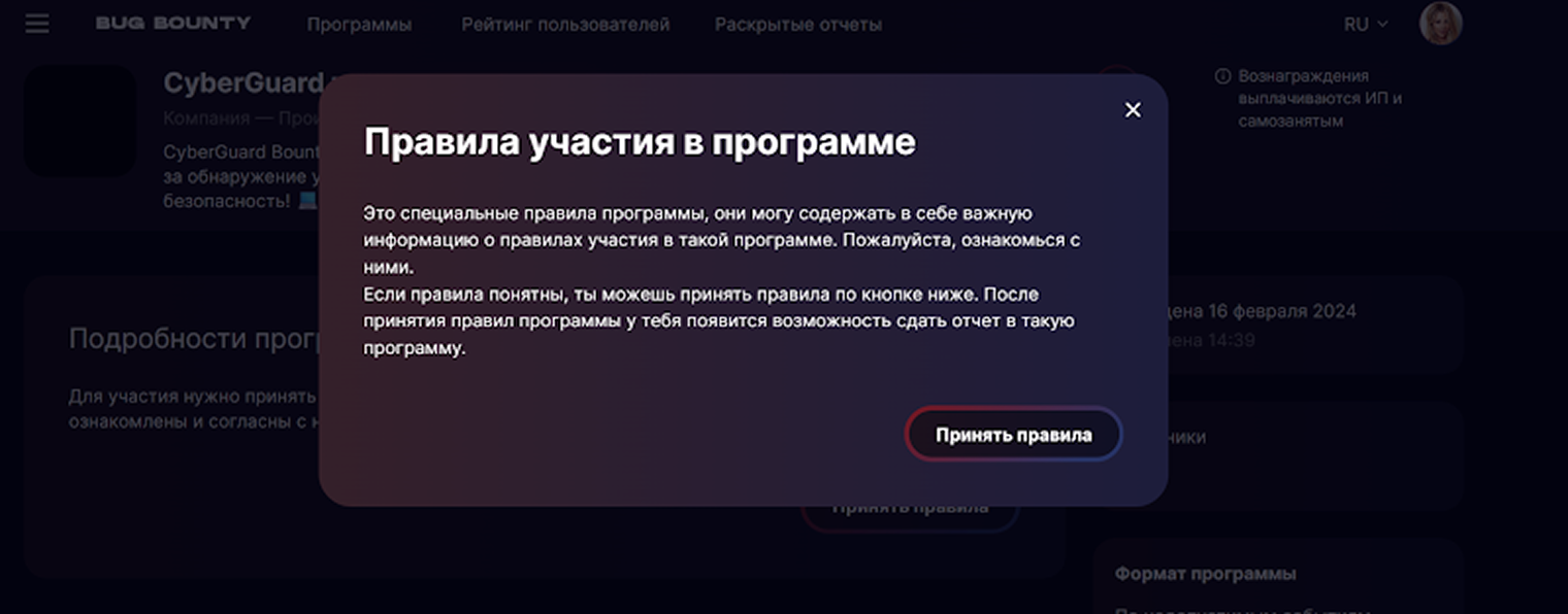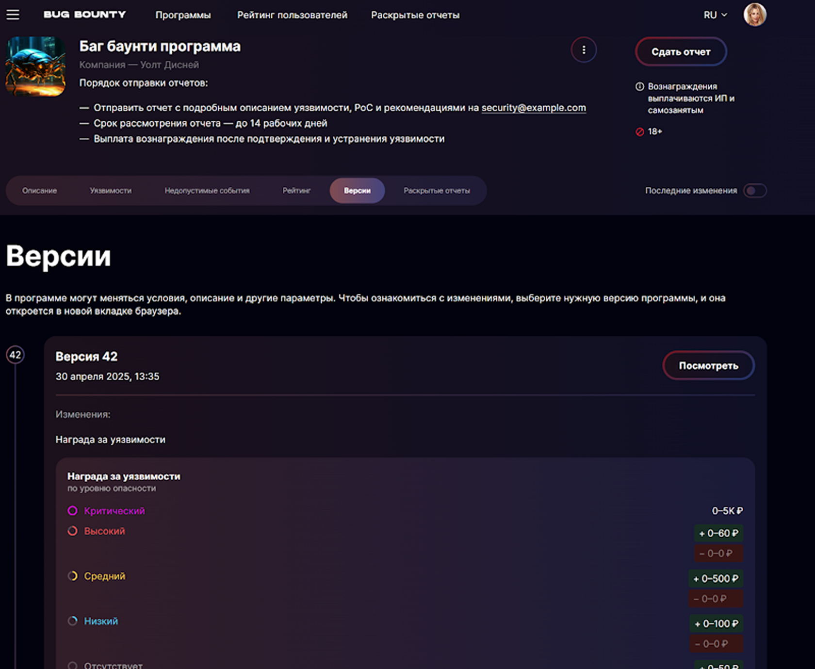 Соблюдение правил — это защита как для исследователей, так и для компаний. Компании доверяют платформе именно потому, что исследователи работают в предсказуемых рамках. Так, платформа становится легальной площадкой для исследований, которая даёт доступ к реальным продуктам и обеспечивает прозрачную систему выплат.